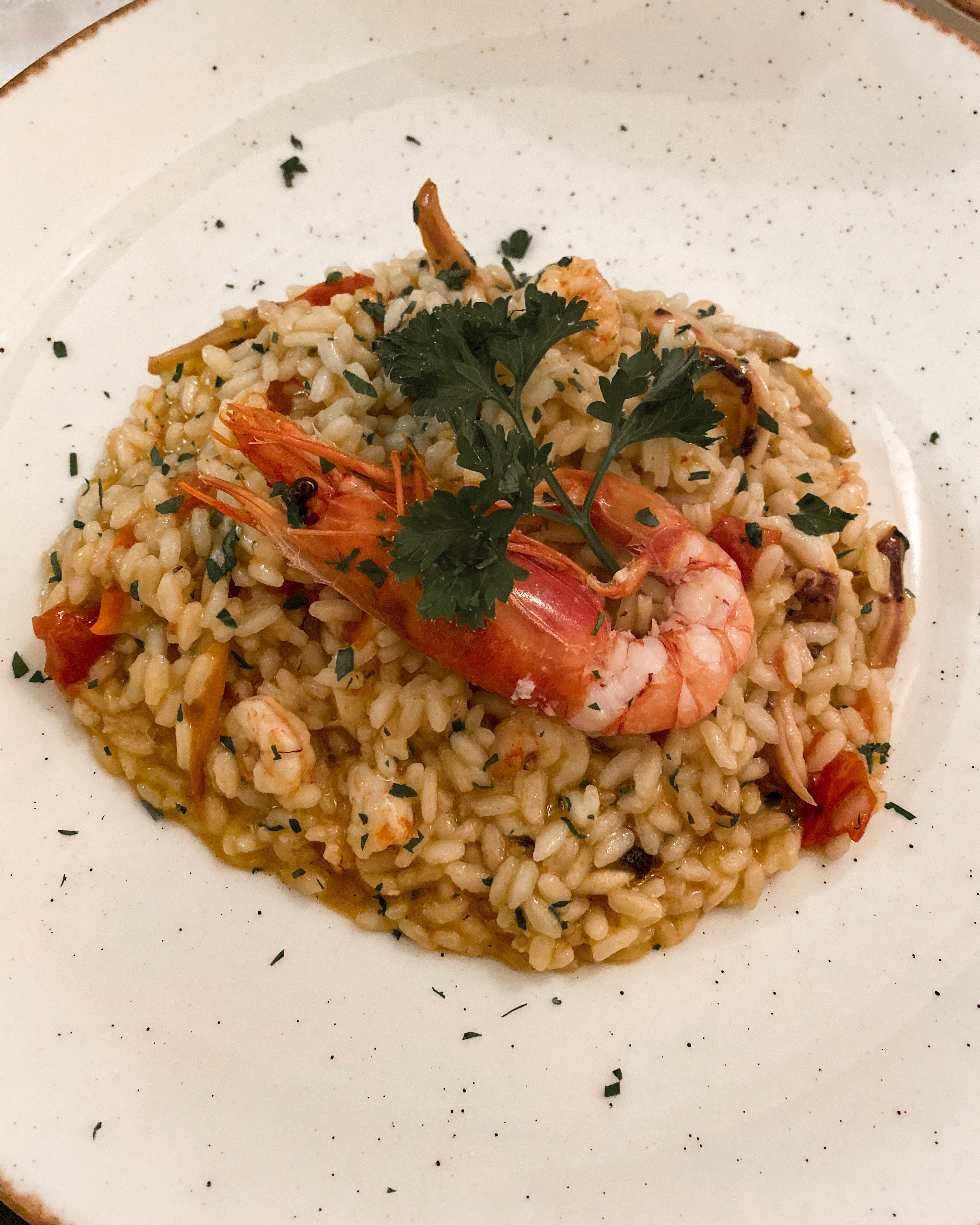 After the cruise, we took a ferry back, changed/freshened up at our hotel and walked back to downtown Amalfi for dinner. For dinner, we went to a restaurant called L’ Abside Ristorante and this was hands down the best meal both Tommy and I have ever had in our entire lives. I’m not joking around when I say that either. We ordered some wine to begin with and let me caution you.. when they ask you if you want 1/2 or 1 liter of wine, go with 1/2 liter. We didn’t realize how much 1 liter was so we went with that… the walk home wasn’t a straight line to say the least. For an appetizer we got buffalo mozzarella, for dinner we got seafood risotto, and for dessert, we got this cute little cake thing. It was all so so so delicious.