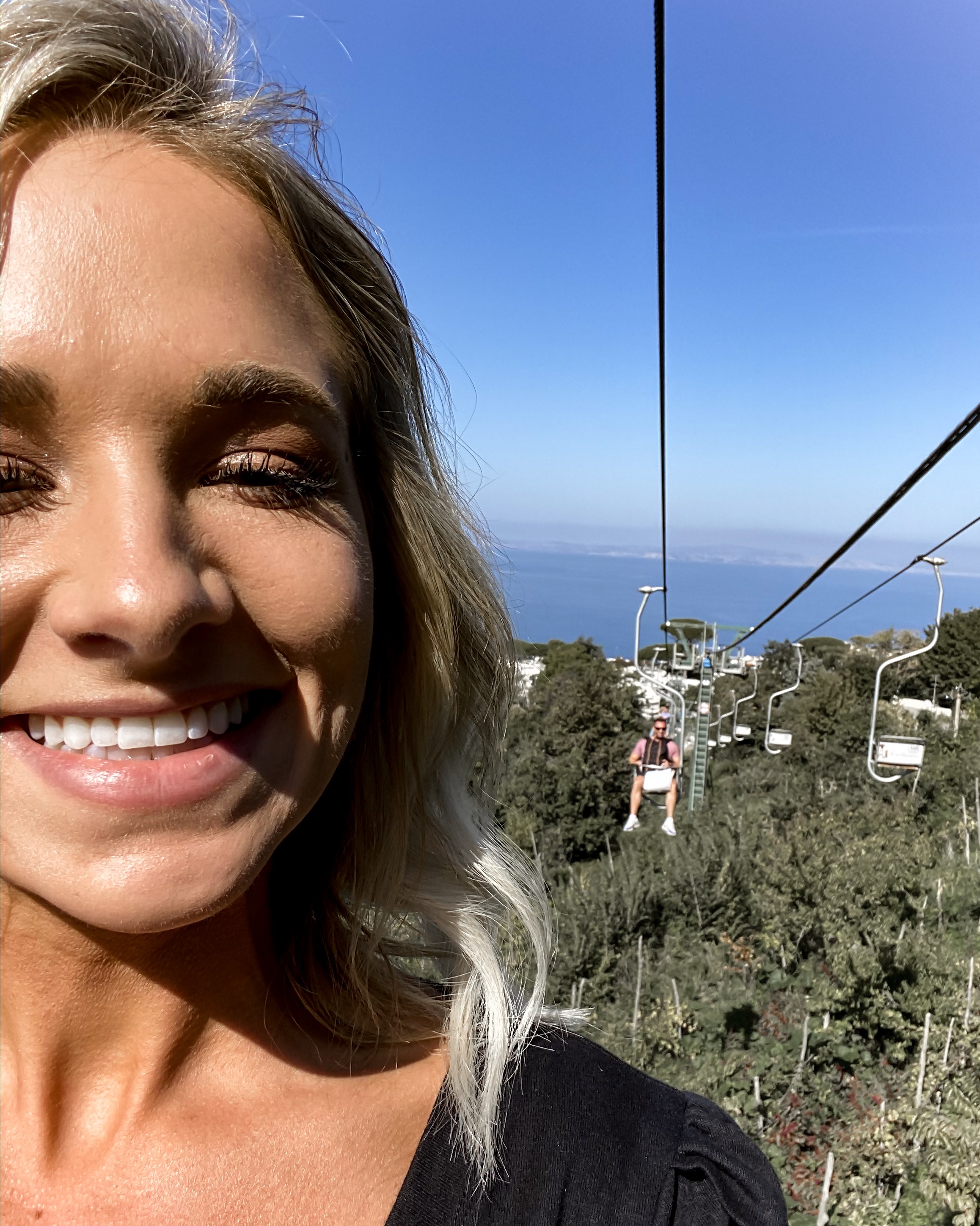 Capri! We got up early and took a ferry around 9:30 am from Amalfi to Capri, I would recommend going early because not as many ferries run to Capri since it’s a longer trip (about 1.5 hours). Again, wear comfortable shoes here because there are millions of stairs. Down near the port in Capri, I got custom sandals made from a little shop, which was a cool souvenir to take home! Then we walked up a whole bunch of stairs to the downtown Capri area where we took a bus to AnaCapri which has a ton of cute little shops to get souvenirs at. Then…. we took a chair lift to the top of the island, which was SO FREAKING SCARY but also, SO COOL. If you don’t like heights I wouldn’t recommend this, but wow was it beautiful, then we had a drink up top, took 8,000 pictures, and took the lift back down. We did a bit more shopping then caught the last ferry back to Amalfi, freshened up and went out for dinner back in Downtown Amalfi.